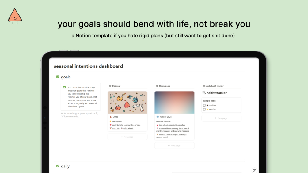 - Habit tracker designed for consistency, not guilt (miss a day? The seasons forgive you).